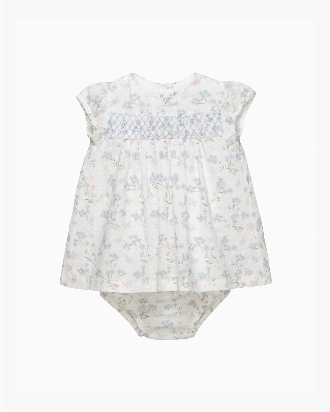 Baby My First Smocked Dress in Blue Plumetis | Trotters London – Trotters Childrenswear USA