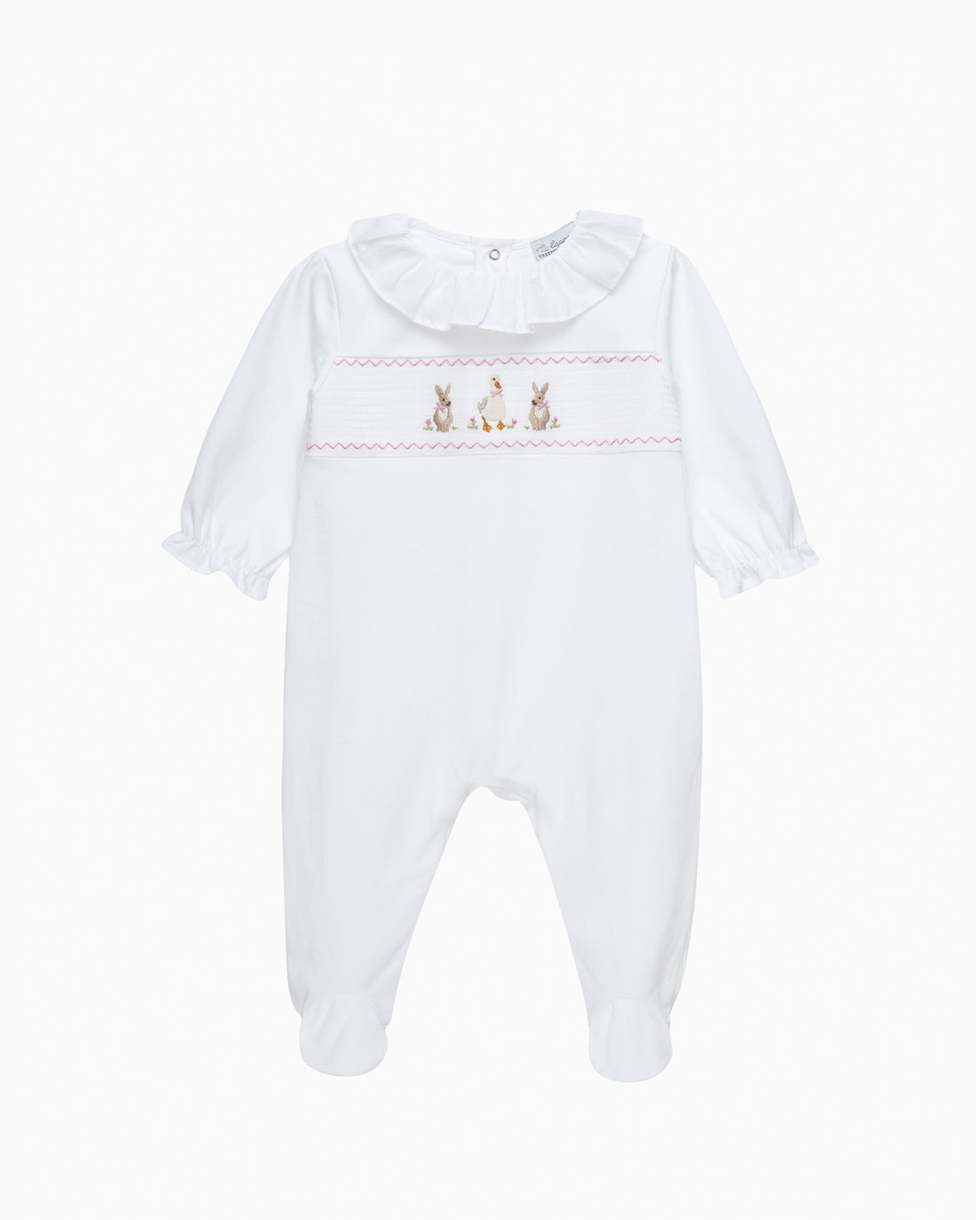 Baby Smocked Onesie in Duck & Bunny | Trotters London – Trotters Childrenswear USA