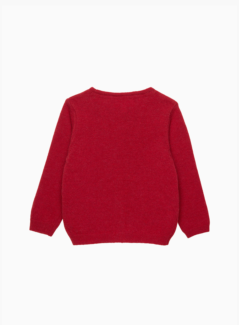 Simple, understated and yet the perfect sophisticated layer, this luxurious cardigan for baby girls is crafted in a warm woolen mix. Available in a rich crimson colorway, it comes complete with red velvet bow fastenings down the front to add a bit of festive flair to any baby girl's outfit this season.