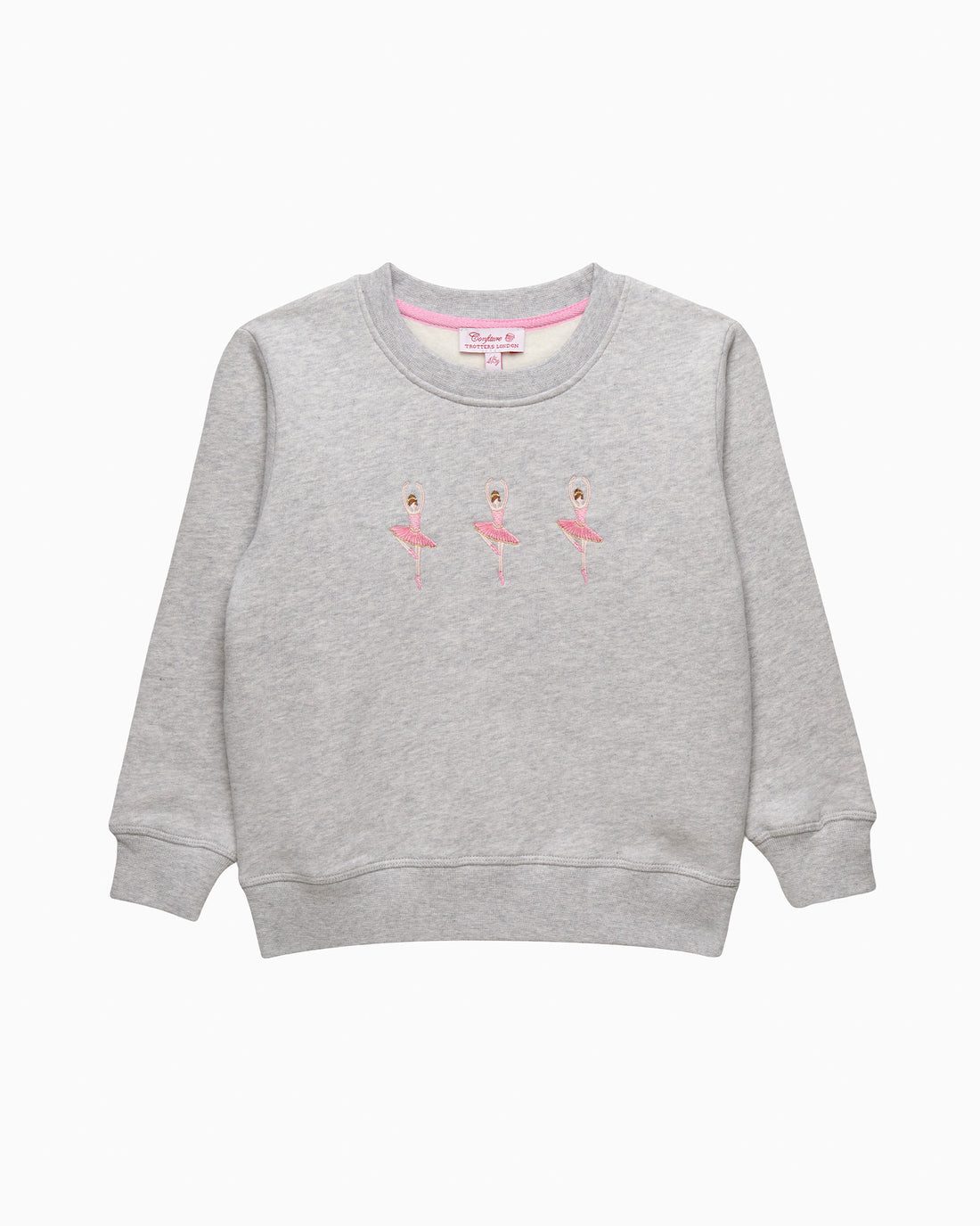 This more relaxed sweatshirt for girls comes in a classic, versatile grey colourway and features pretty ballerina embroidered detailing across the front. Made in a super soft jersey with tonal fleece underside and elasticated cuffs and hem, this makes a great go-to layer for everyday dressing.