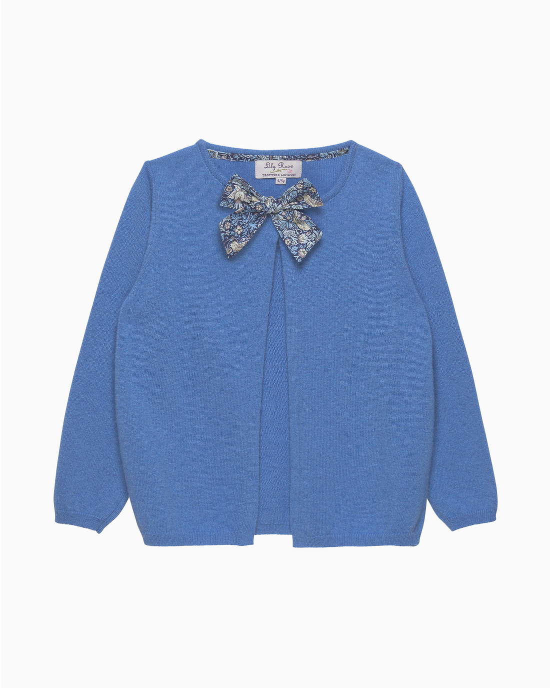 This blue knitted cardigan will add a burst of color to their autumn/winter wardrobe. For a bit of extra 'wow-factor' it features a large statement bow made in Liberty's Strawberry Thief fabric, originally designed by William Morris in 1883. Perfect for layering over our coordinating pieces for a show stopping outfit.