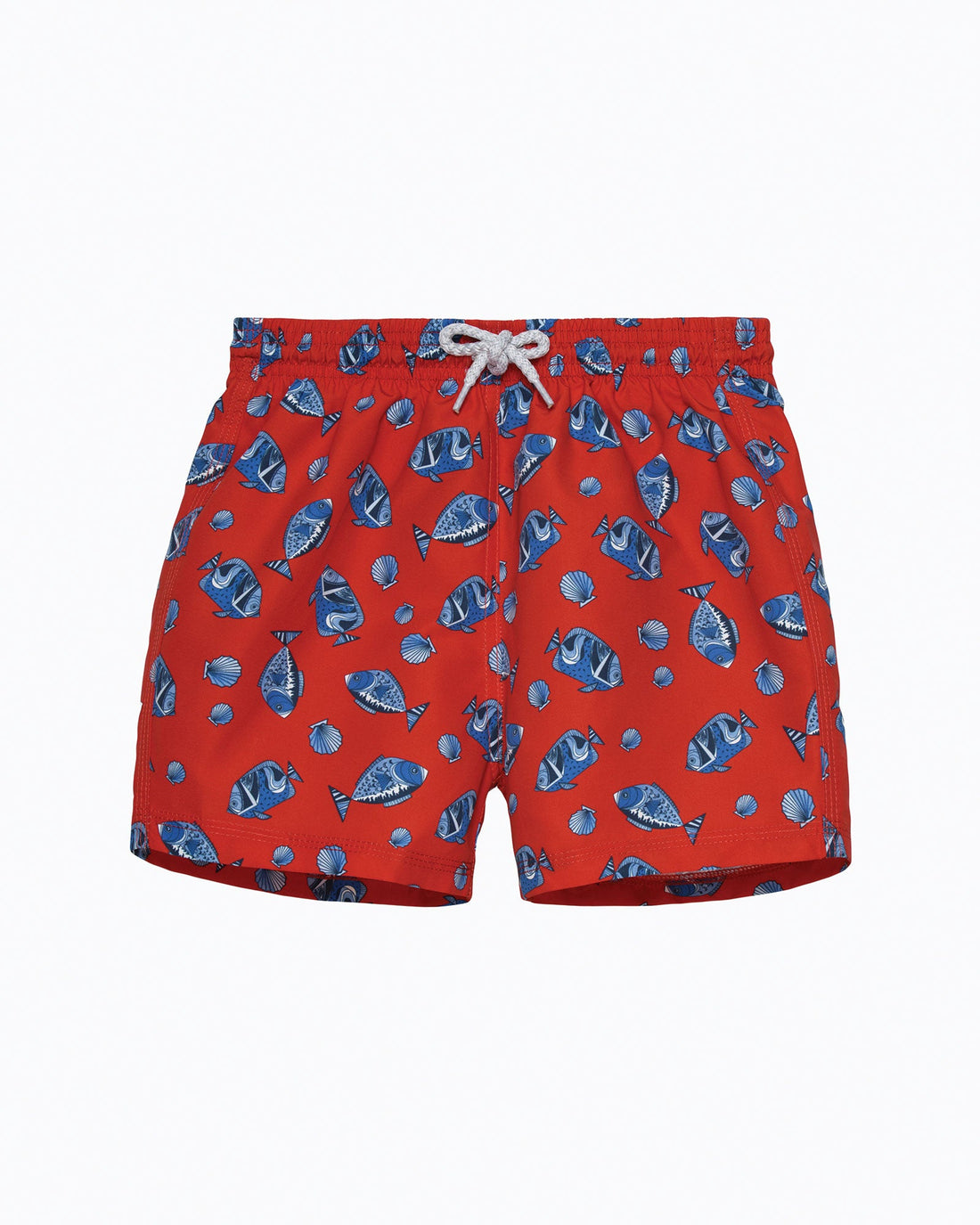 Boys Swimshorts in Red Fish | Trotters London – Trotters Childrenswear USA