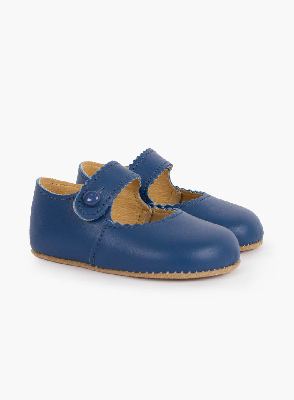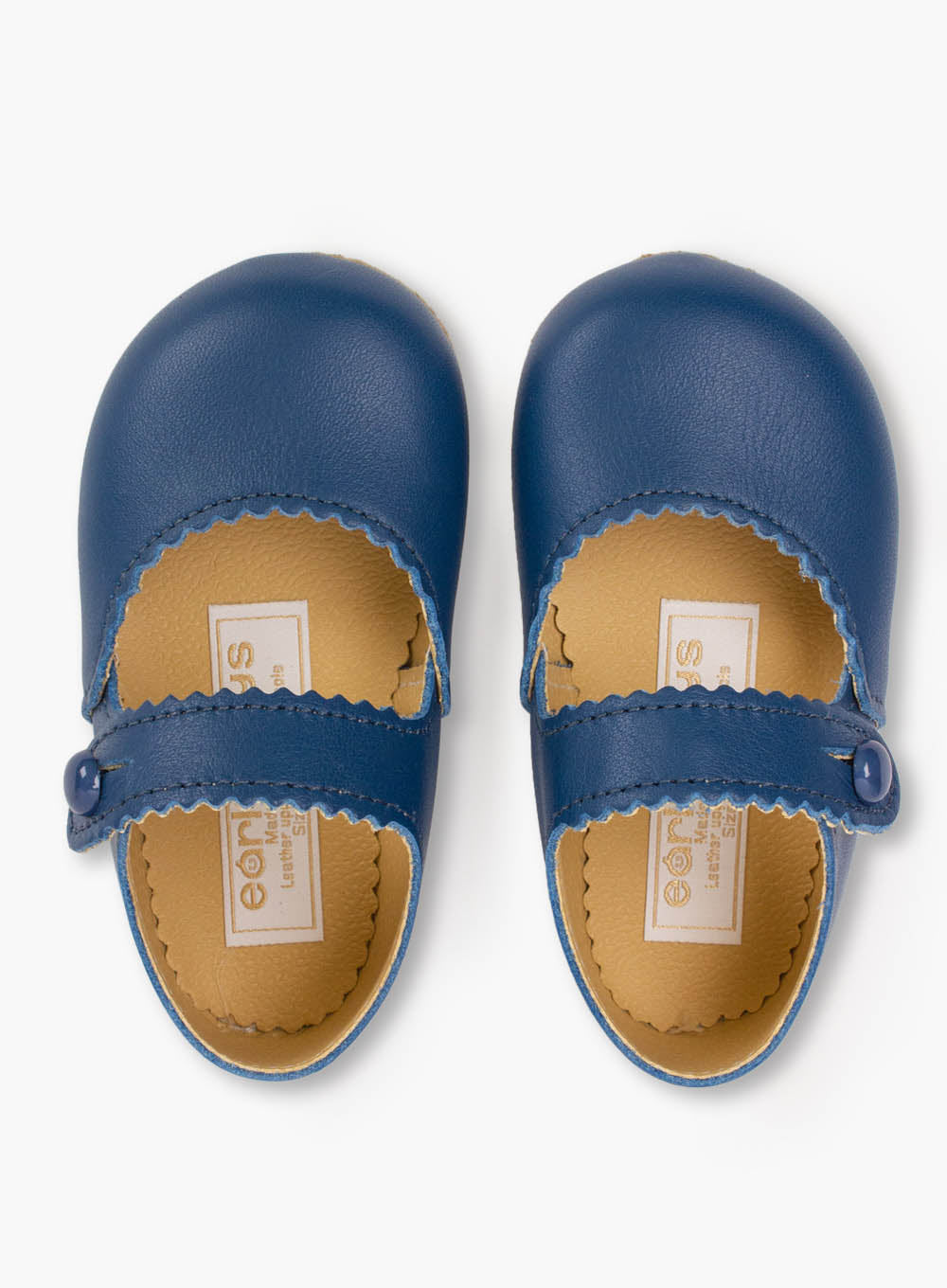 Our Early Days Emma pre-walkers are perfect for little feet, offering protection, comfort and style. Featuring a delicate Mary Jane strap finished with pinking shears for a zig-zag edge detail, fastened with a button and made from buttery soft Italian leather with a durable soft, breathable sole.Size Guide:EU 17/UK 1 = 3 - 6mthsEU 18/UK 2 = 6 - 12mthsEU 19/UK 3 = 12 - 18mthsEU 20/UK 4 = 18 - 24mths