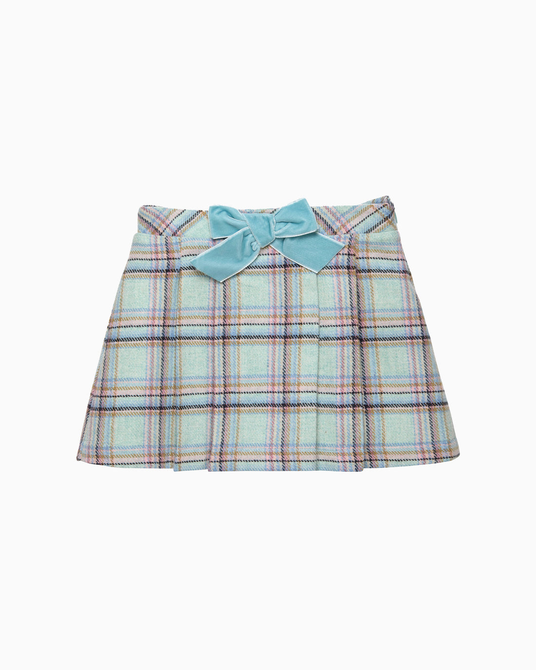 Made in this stylish sea green check, our Etta skirt is guaranteed to inject a bit of sophistication into their wardrobe this autumn. It features a complementary tonal velvet bow at the waist for a chic finish. Fully lined in 100% cotton voile, why not pair with a simple blouse for a classic and traditional look that never goes out of style.