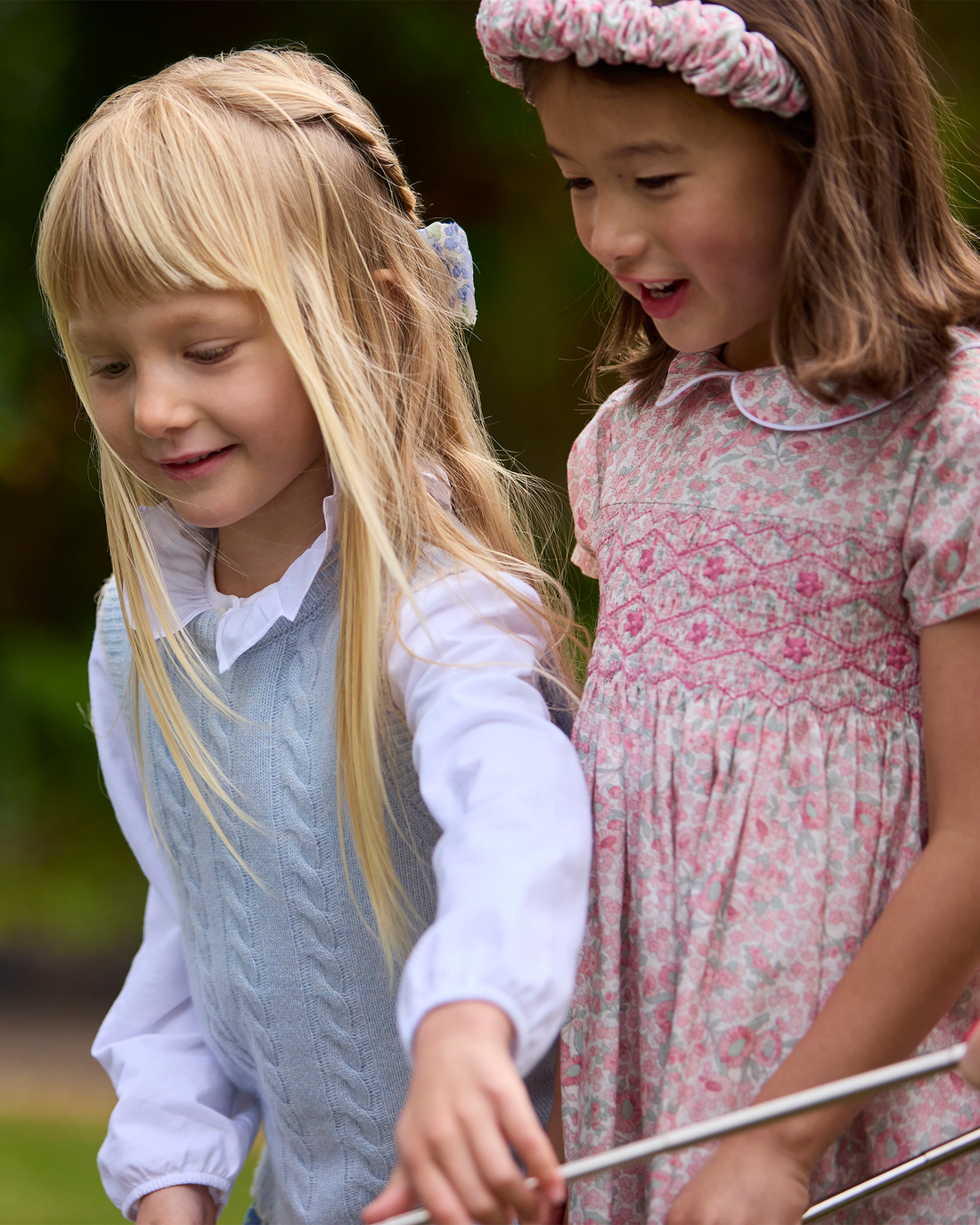 A new style this season, this knitted vest is available in two colors and features a delicate scalloped trim, contrasting cream edging and cable knit detailing. An ideal transitional layer, pair with a blouse or jersey long-sleeved top for a classic look.