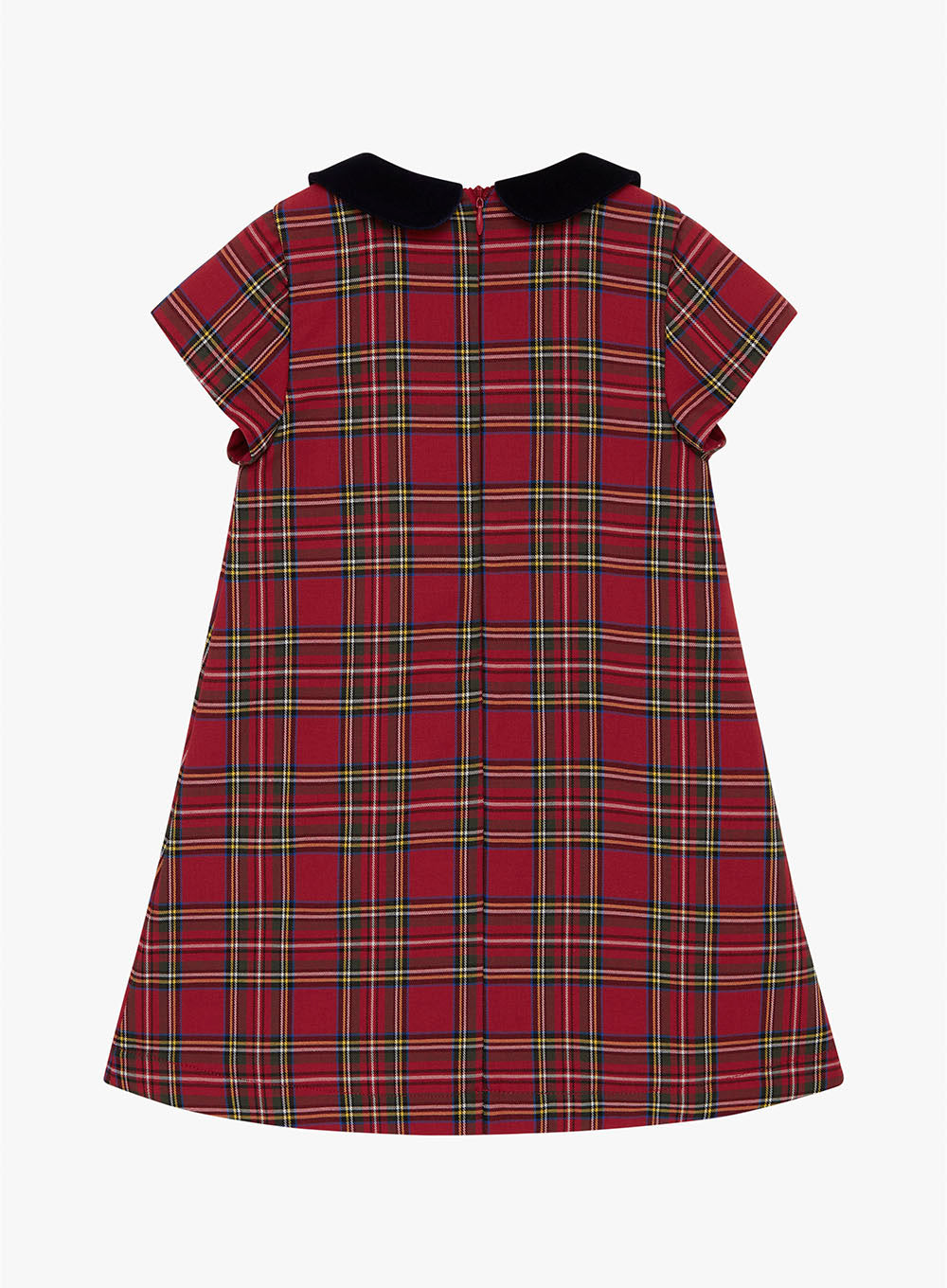 Our Madeline A-line dress comes in a festive red plaid and features a contrasting navy velvet Peter Pan collar. Perfect for the Christmas party season, complete the outfit with a pair of white opaque tights for a timeless look.