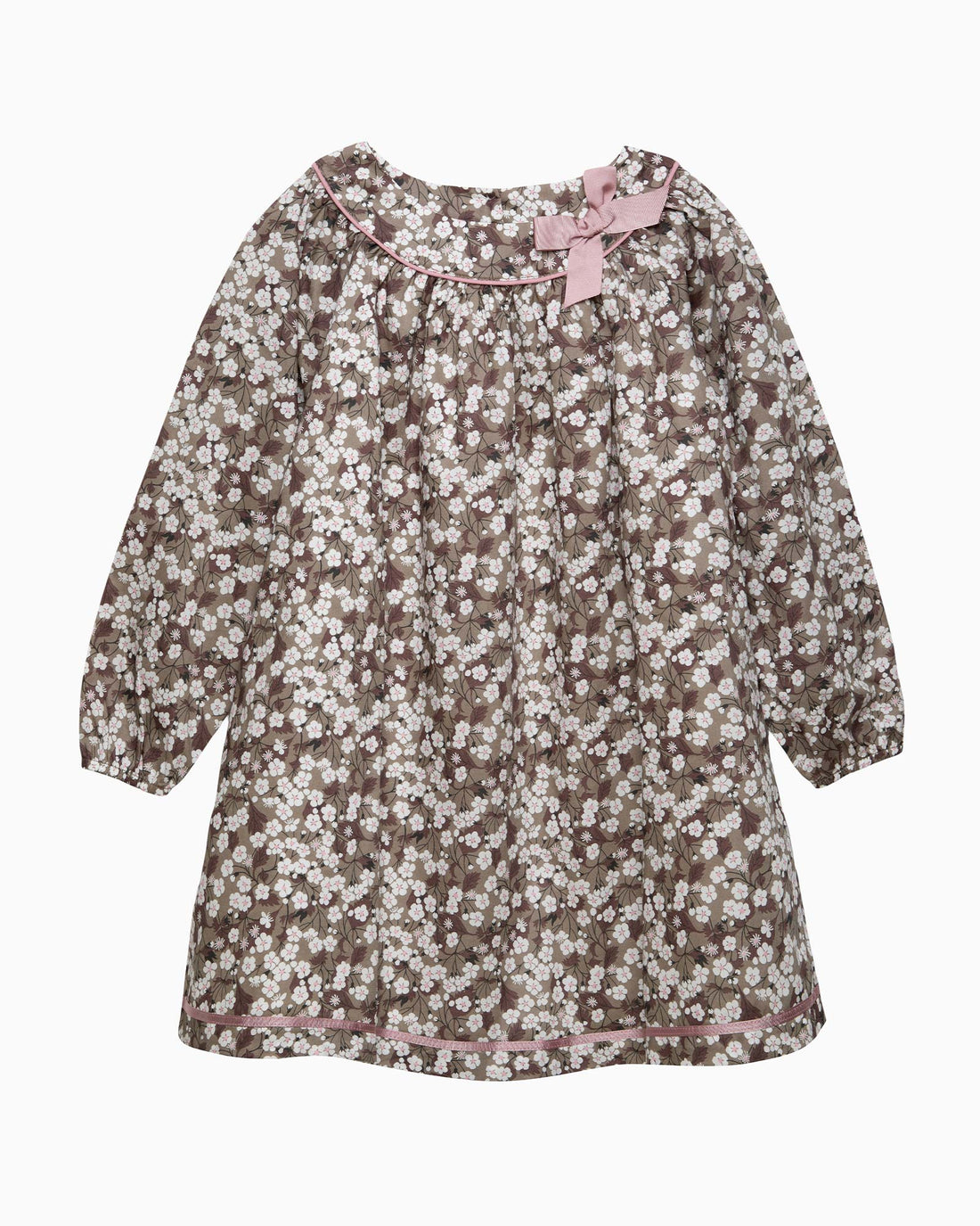 Made in Liberty's Mitsi print fabric, a beautiful Japanese-style cherry blossom design, this A-line dress has a relaxed, floaty shape, long raglan sleeves and complementary pink grosgrain detailing. When layered under a coordinating cardigan, it makes the perfect outfit for transitioning between the seasons.