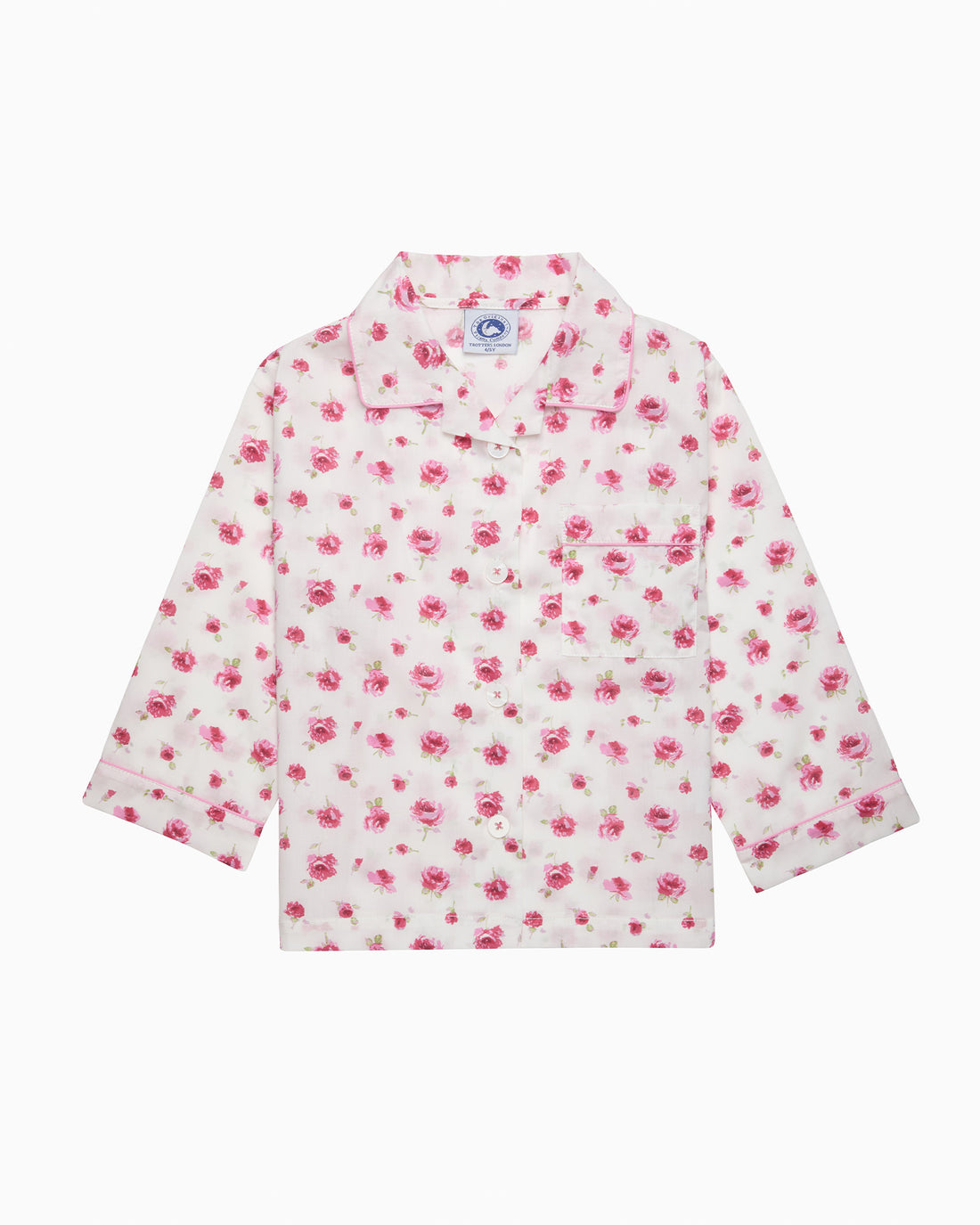 Made in Liberty's Rosa print fabric, these pajamas feature a classic collar and pearlized button down front. The pants have a fully elasticated waist and are just the thing for sweet dreams and a comfortable night's sleep.